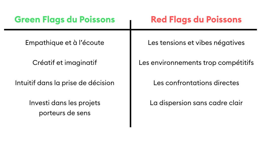 Créatif, à l’écoute et doté d’une grande intelligence émotionnelle, le Poissons évolue avant tout dans un environnement où il se sent en phase et utile.