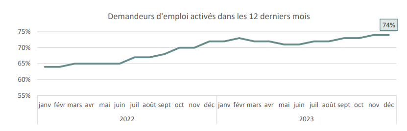 Le saviez-vous ? En décembre 2023, 74 % des demandeurs d’emploi résidents disponibles inscrits à l’ADEM présentaient une durée d’inactivité inférieure à 12 mois.