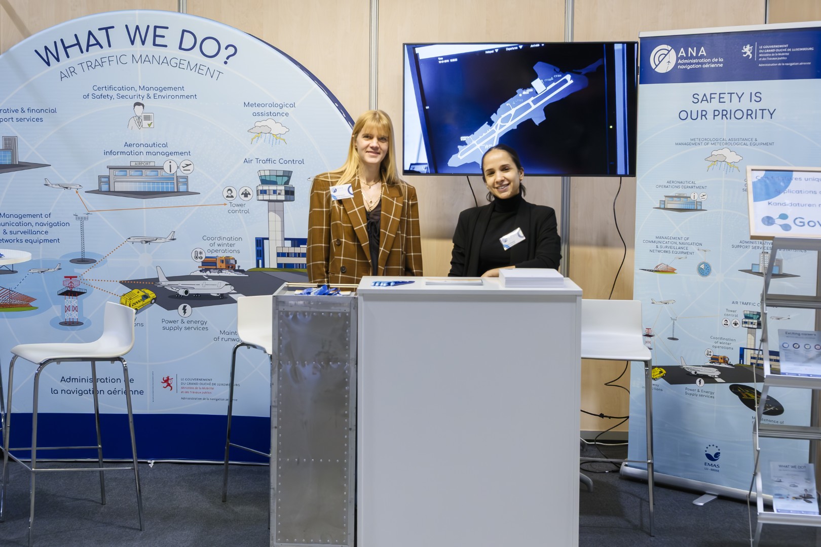 L’Administration de la Navigation Aérienne (Degré de Séduction = 4,78) continue de séduire les candidats et se retrouve à nouveau sur le podium. Et les images parlent d'elles-mêmes : un stand harmonieux, des mots-clés précis et des exposants rayonnants.